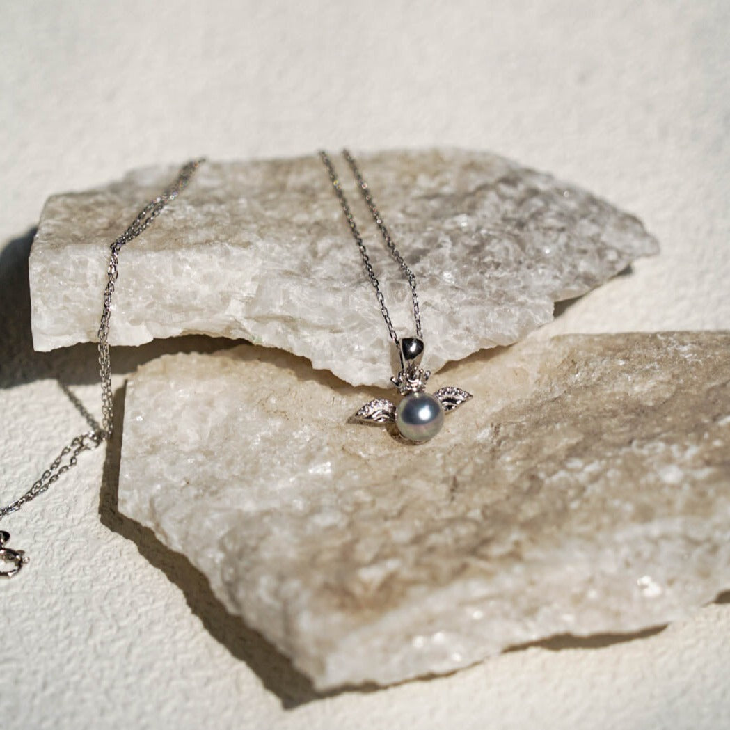 Angel Sea Akoya Pearl Necklace is a captivating blend of angelic charm and the mystique of the ocean depths.Crafted from the purest Akoya pearls, sourced from the depths of the sea, each pearl boasts a radiant luster that mesmerizes the beholder.