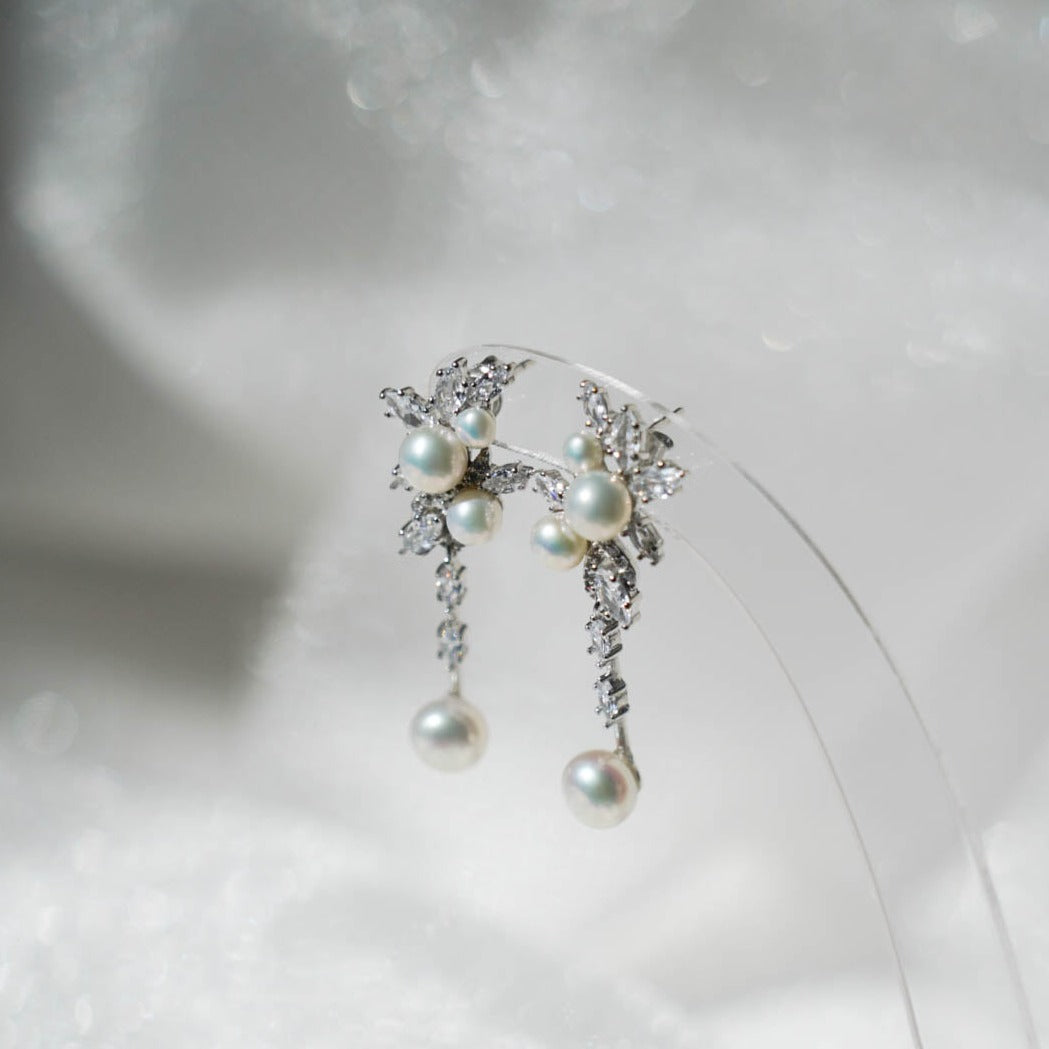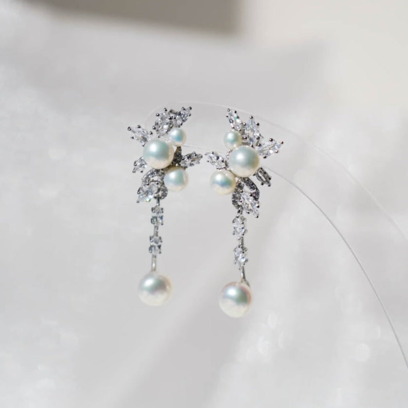 Falling Snow Pearl Earring where elegance meets nature's delicate beauty. Each earring features a cascade of shimmering pearls, evoking the serene charm of falling snowflakes.
