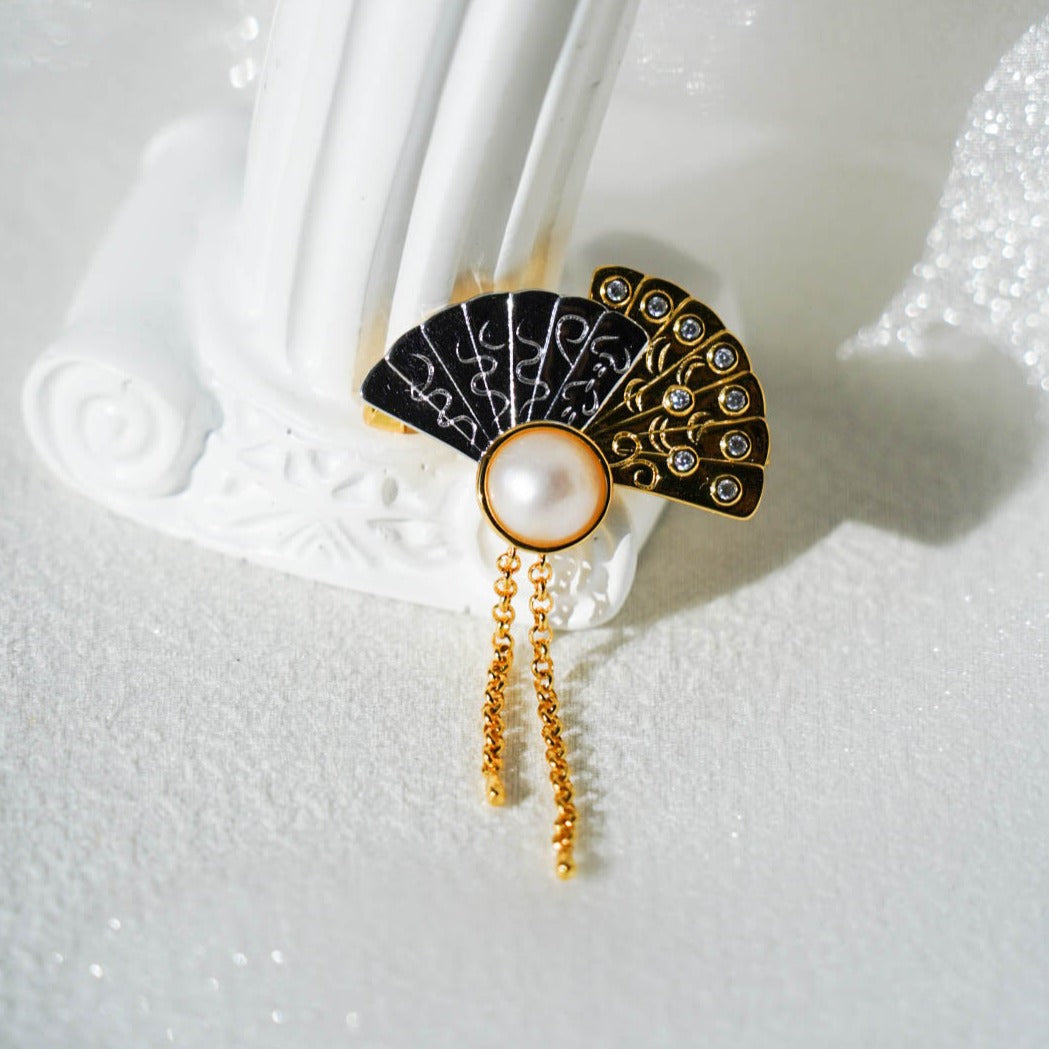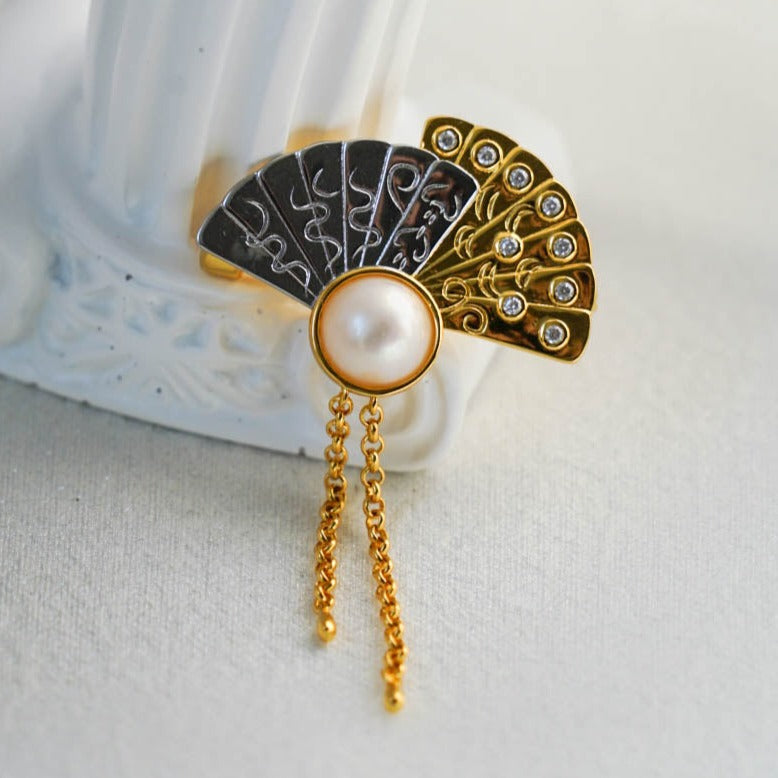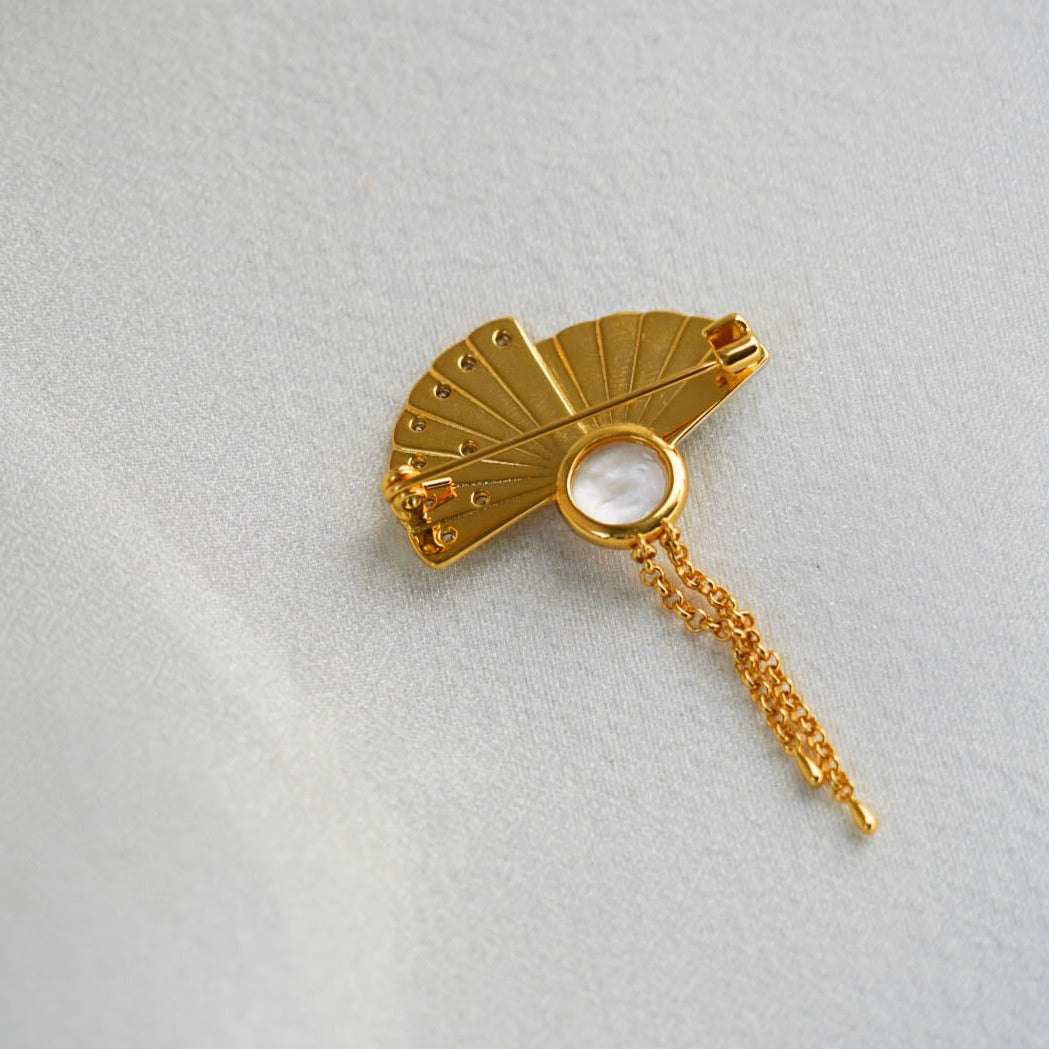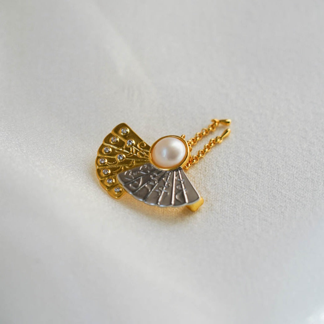 Fan Mabe Brooch is a piece that embodies timeless elegance. This exquisite brooch features a beautifully crafted fan design, centered with a lustrous Mabe pearl.