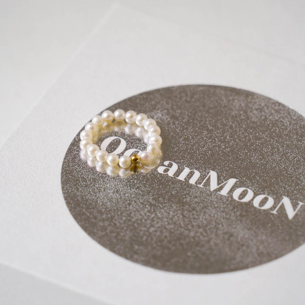 Gold Bean Pearl Ring features a classic design with a modern twist. Crafted from a circle of small pearls, it is adorned with a charming 18k gold bean, adding a touch of luxury and uniqueness to the piece.