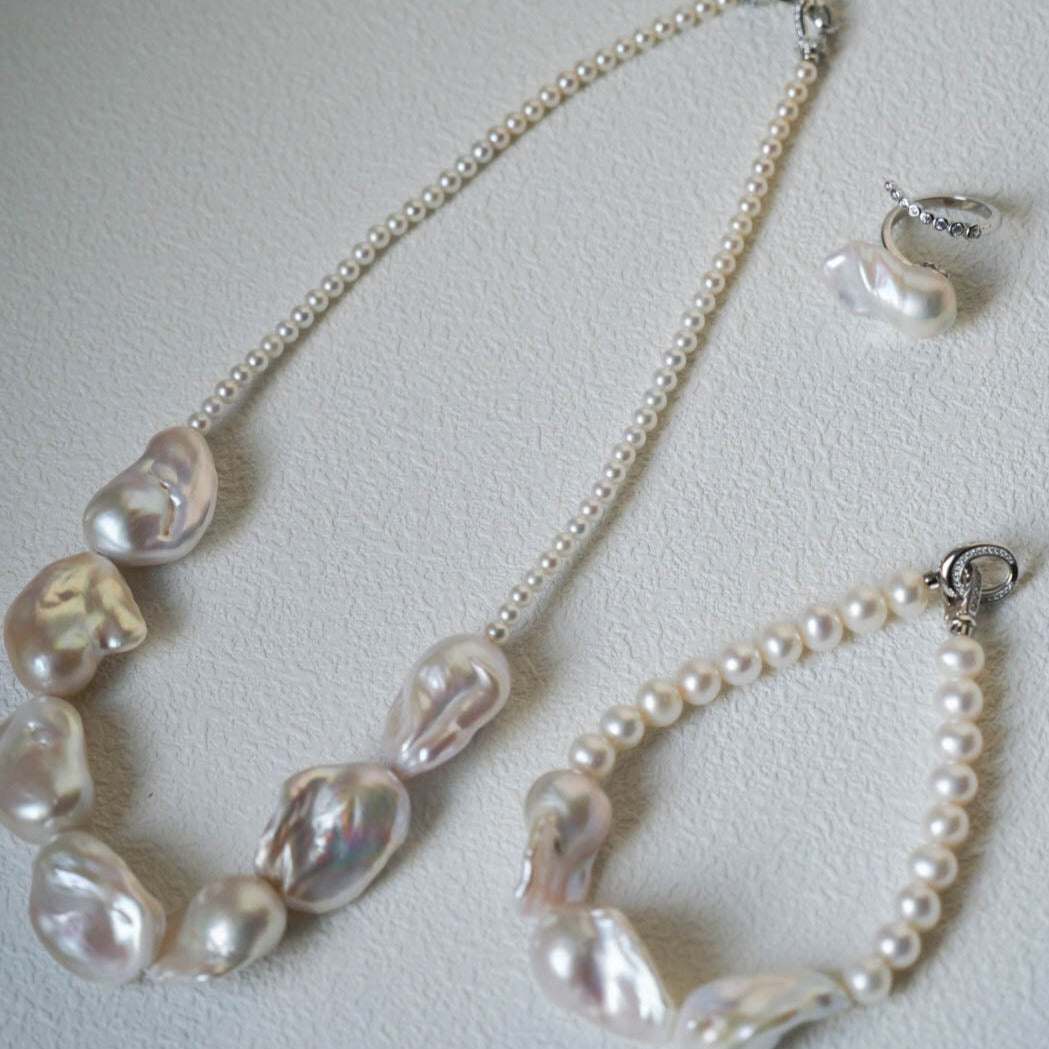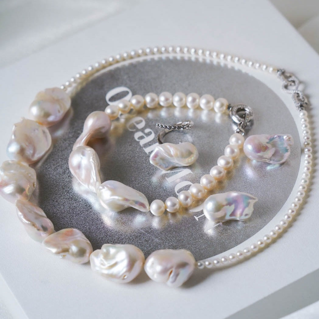 Half-Moon Baroque Pearl Set—— a versatile ensemble comprising a necklace, bracelet, earrings, and ring, designed for customizable pairing.