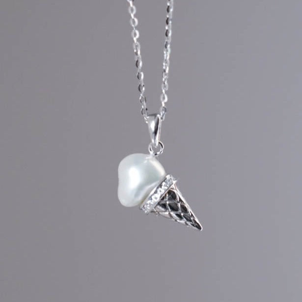 Ice Cream Baroque Pearl Necklace—— a delightful pendant featuring a natural baroque pearl paired with a sterling silver ice cream cone charm. This playful and charming design brings a whimsical touch to any outfit.
