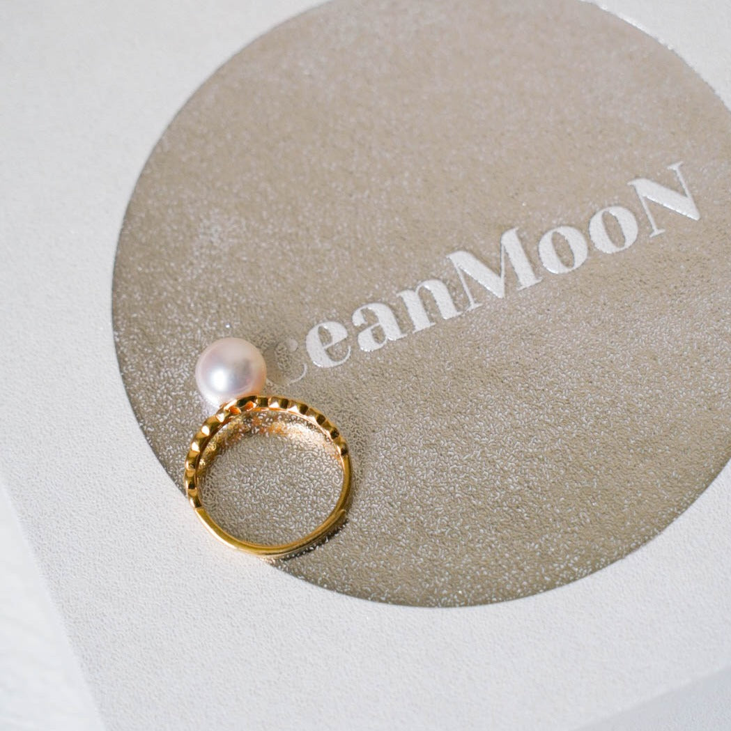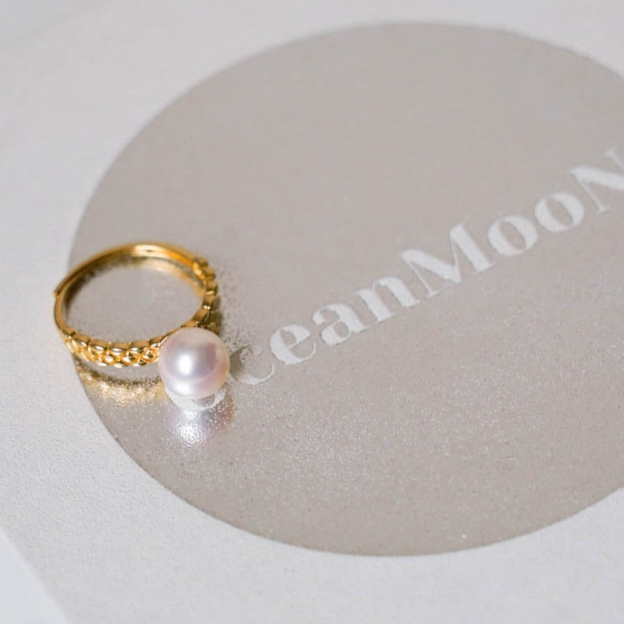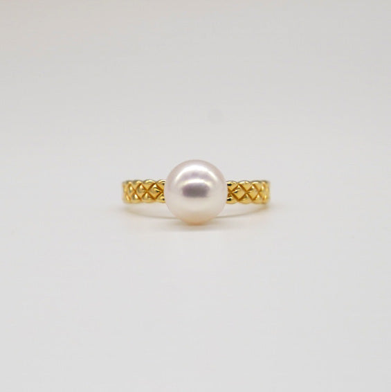 Meticulously fashioned from sterling silver metal with a captivating gold hue, the Lozenges Akoya Pearl Ring boasts a luxurious allure that commands attention. Adorned with nature's finest pearls, each chosen for its impeccable luster and iridescence, this ring exudes a natural, understated charm.