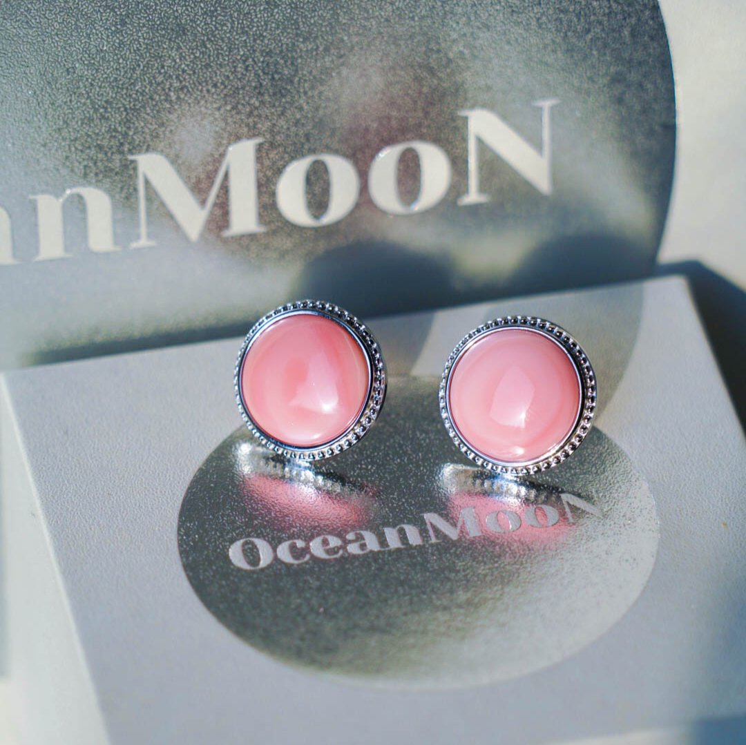 Pink Conch Shell Earring, a stunning pair of earrings crafted from natural pink saltwater conch shells with a diameter of approximately 28.5mm. These earrings are incredibly eye-catching and adorable, making a bold fashion statement.