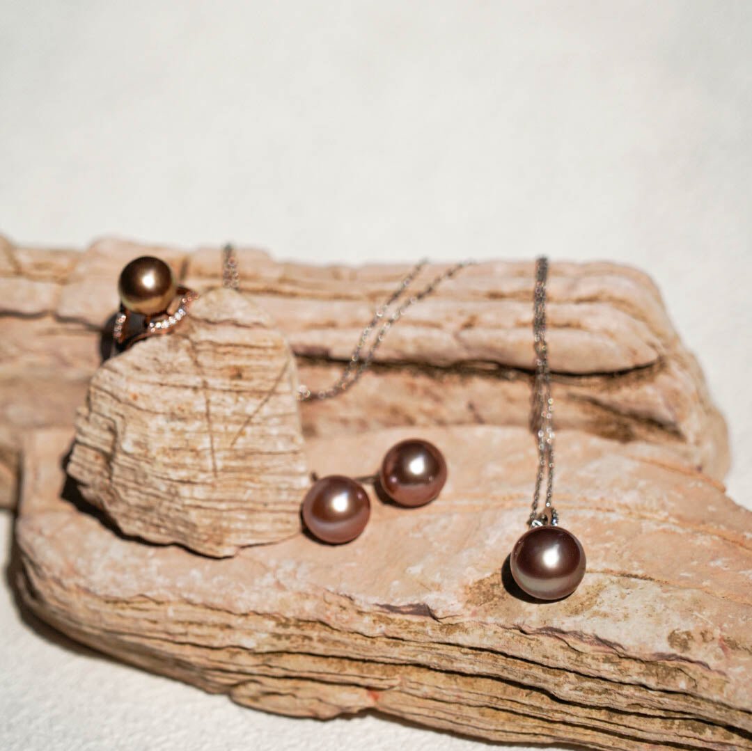 Handcrafted from natural pearls, gemstones, and shells, each piece bears nature’s own marks — lines, pits, and shades — making it truly unique.