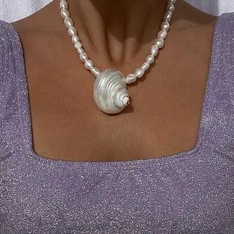 Shell Necklace 004 is made from natural shells and freshwater pearls, capturing the serene essence of the ocean.