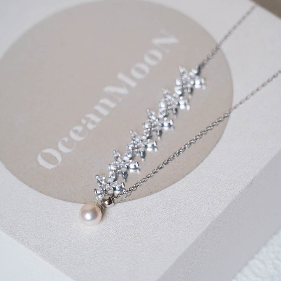 Six Flower Pearl Necklace —— a stunning fusion of elegance and gentleness, featuring a unique design of six interconnected flower shapes. Six flower pendant is adorned with a captivating sea pearl, infusing your style with a unique charm.