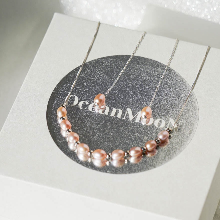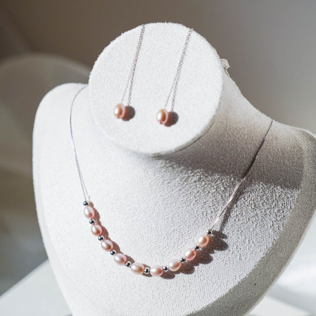 Handcrafted from natural pearls, gemstones, and shells, each piece bears nature’s own marks — lines, pits, and shades — making it truly unique.
