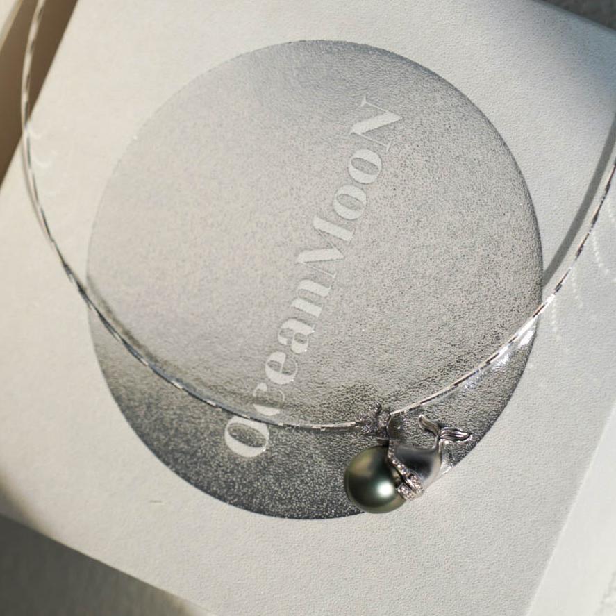 Whale Tahitian Pearl Necklace—— a necklace designed in the shape of a whale, using Tahitian black pearls, paired with a sterling silver chain. This necklace embodies a perfect blend of personality, fashion, and sophistication.